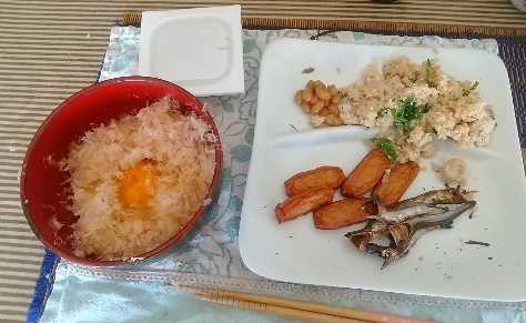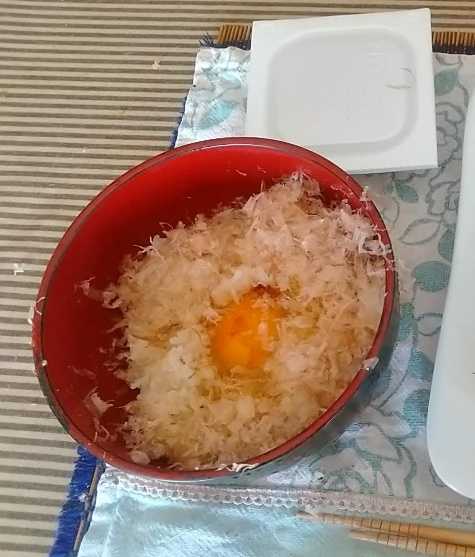 さっそく お昼ご飯に卵かけご飯に上等かつをぶっかけて・・・