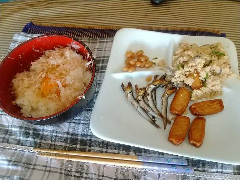 おかずは おからの炊いたんと丸干し 煮豆 練りモリ