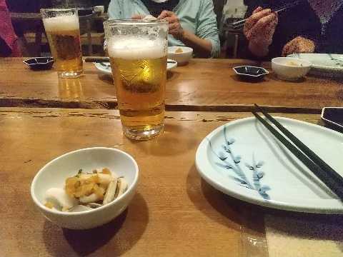 飲み放題プラン選択した三名 まずはビールで乾杯