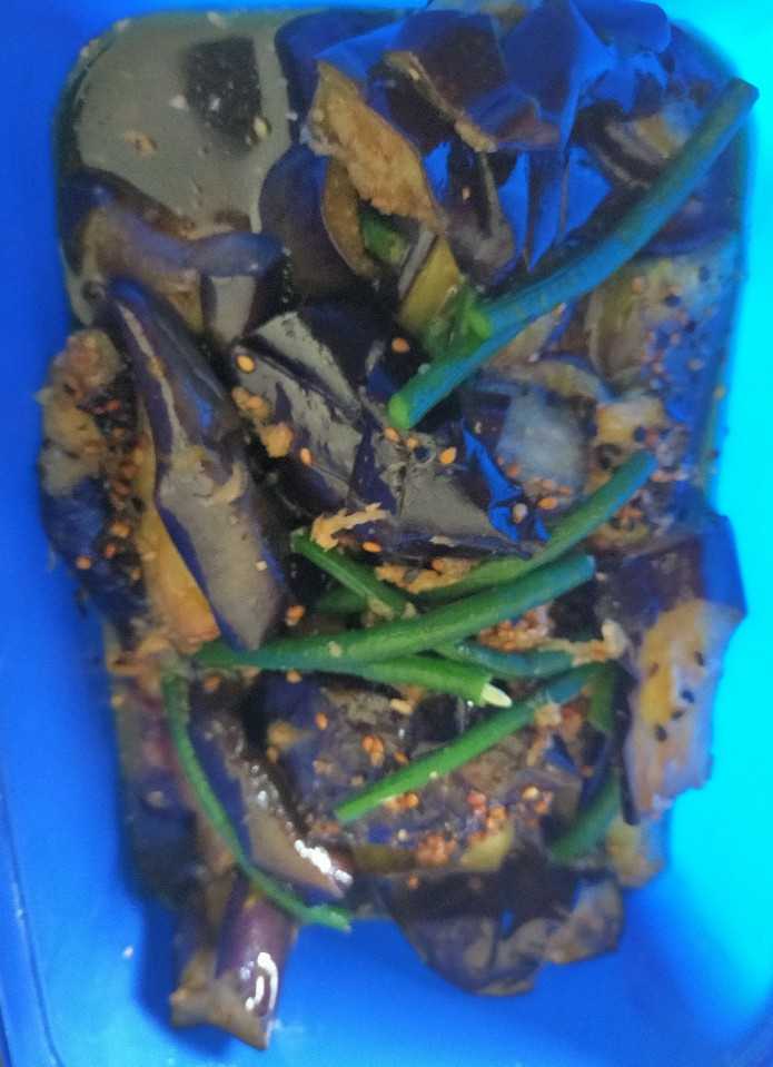 一番油で茄子の素揚げ