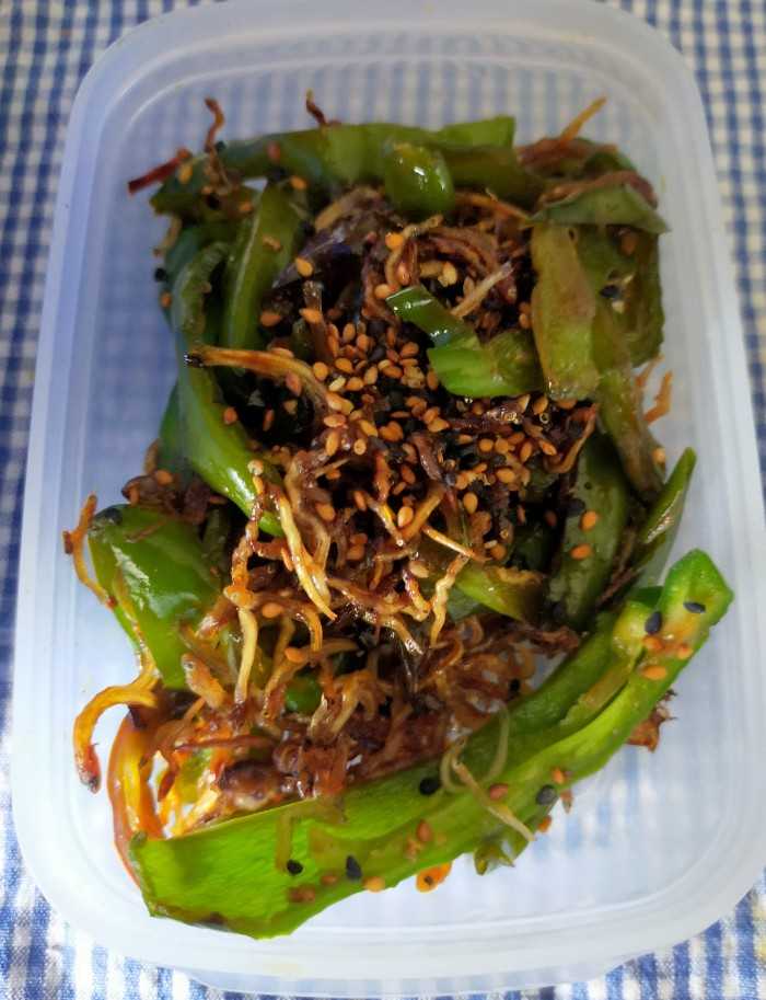 今が最盛期のピーマンも雑魚と炊きました