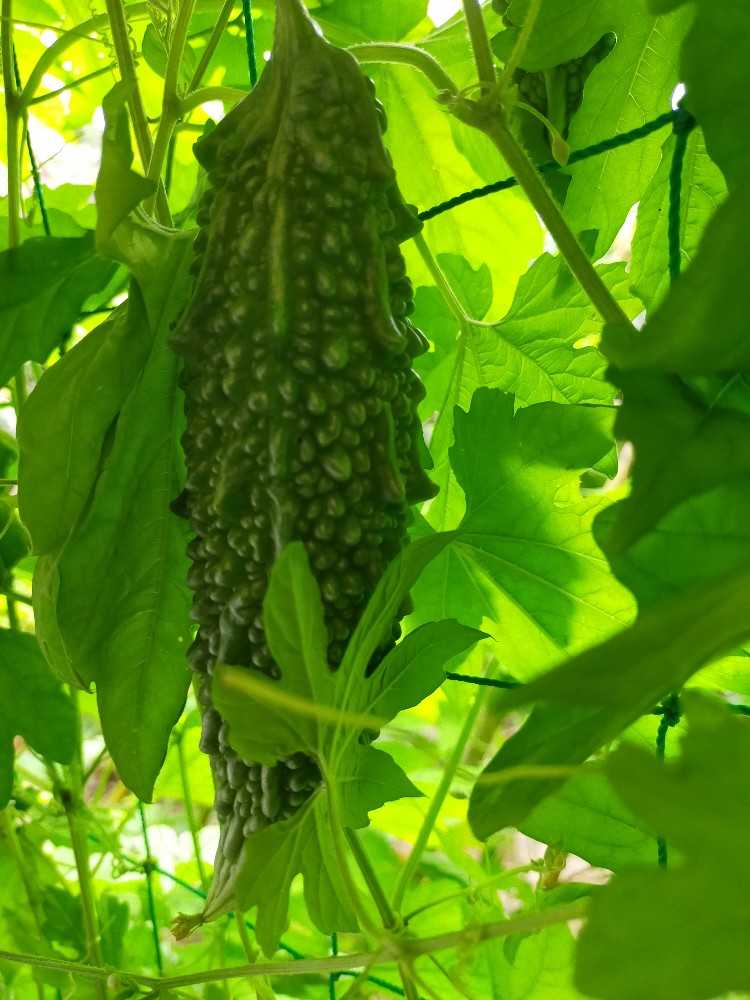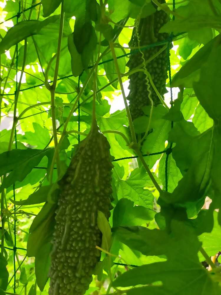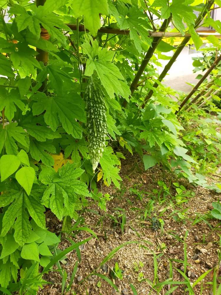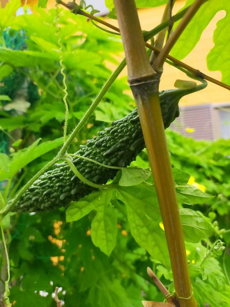 ゴーヤの方に目をやったら数本ぶら下がってます