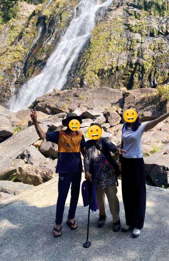 滝のそばまで案内してたテツパチーノ 突然姿消えて