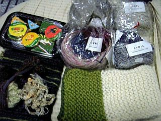 入ってたのは、出来上がってる小物はマフラーとカバン