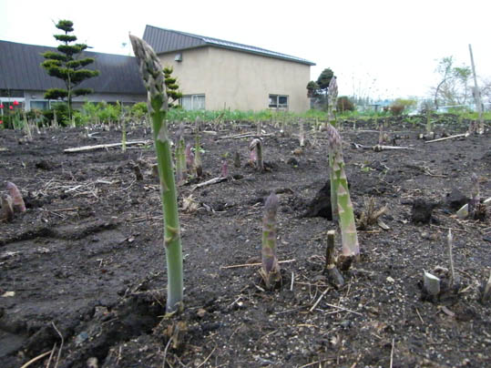 低温が続いてなかなか出てこなかったアスパラもやっと路地物が出ました(笑)これで暫くはアスパラ三昧で・・・・・飽きちゃうんだよな~(爆)出てきたといっても低温と日照不足で変形が多いような・・・!でも食べりゃ同じで美味しいよ~~♪そして次は庭の野良アスパラ・・・(笑)しかも庭の番人がまだ気付いていない貴重品(爆)でもいつまで伸びていられるやら・・・?