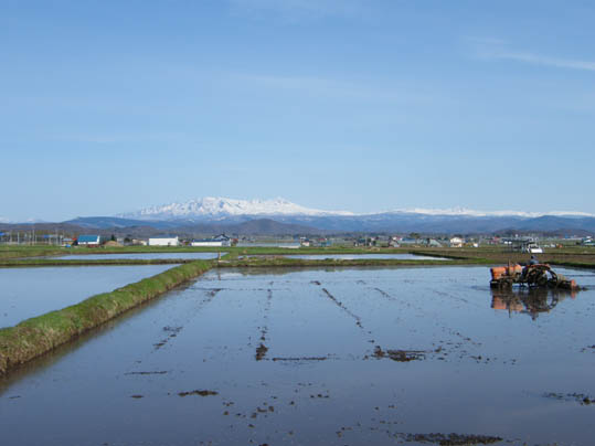 暖かい日が数日しかなかったけど、やっと暖かくなるのかな?水田でも春の動きが始りました~~(笑)大雪の山に雪が残っているのが良い感じ~~♪