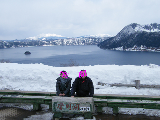 やっぱり新婚旅行の写真はこうでなくちゃね~~(笑)なかなか良い雰囲気を見せてくれない二人にちょっと面白くない私は・・・奥様をそそのかして照れまくる峠さんを無理やり座らせました(笑)「ハイハイ~~、これは新婚さんの定番だからね~~」って、バッチリ撮れました~~♪