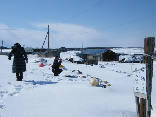 網走では沖に離れた流氷もここなら高確率で見れるよ~~♪って事で、峠さん夫婦と一緒に行ってきました!良い感じの流氷が有り、当然の写真撮影ですが・・・目の前には越えてはならない眼に見えないロープが・・・(爆)入口らしき所には看板とロープが有るけれど・・・なぜか越えられない雰囲気が・・・(笑)一歩を踏み出せない3人の正直者・・・なのか(謎)峠さんが撮っているのはこんな感じかな?