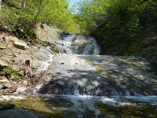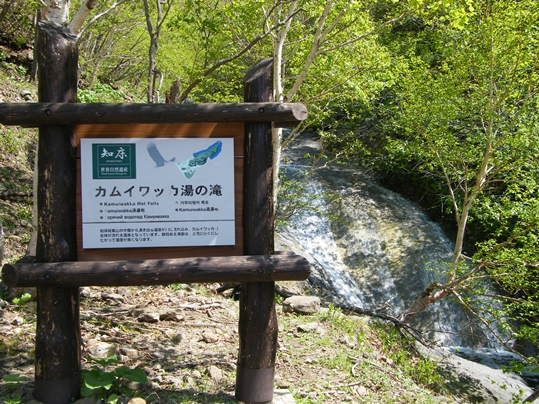 林道を頑張ってカムイワッカまで来たんだから行ける所まで滝のぼり・・・♪流れの横を足元を注意しながらのぼります。新品ブーツは泥だらけ(涙)バイク用のブーツにはつらい道のりなのだ(爆)立木につかまりながら10分位で行き止まりに・・・本当の湯の滝はこの上のはず・・・自然保護の為には仕方がないですね~~!