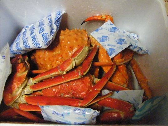 明日パーティです♪御呼ばれのの手土産は花束かな~~?そんな上品な考えが浮かぶ私じゃア~~リマセン!(爆)私にできる最大のお祝いはこれじゃ!!!タラバとズワイを2ハイづつ!!でかいのを用意しました~~~(笑)