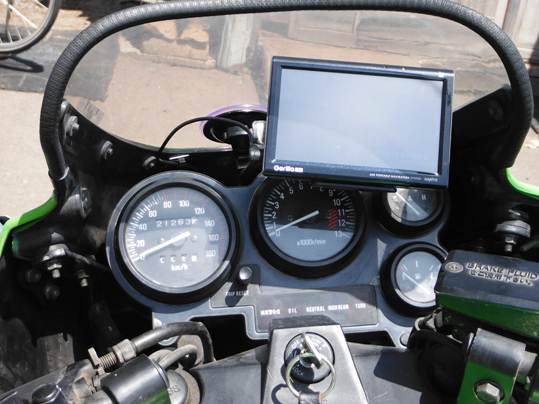 車で使っていたミニゴリラをバイクに装着完了~~♪ネットで買ったステーには固定するが無く・・・騙されたと思ったけど、よくよく見ると固定する部分の記載は一切無くて・・・思い込みと言われれば反論出来ないようなので自分で何とかしました!!純正ホルダーをばらして合わせてみたら何とかなりそうだったので、アチコチ削ったり穴開けたり・・・最後はタイラップで固定して完了です!!走行中は外れないで簡単に外せるとなれば純正品が良いかも~~(笑)そのままだと不安定だったステーをグリグリ曲げてメーターに沿うようにしたら思ったよりも安定して、試運転で走ってみても不安を感じない安定感です。直射日光での見え方も問題なく、事前に作って置いたバイザーはゴミ箱行き(爆)横から見るとスクリーンの中に結構入り込んでいるので突然の雨でも安心だと思います!後は天気だけだな~~!!