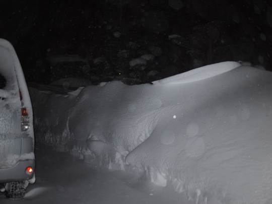 昨夜から降り始めた雪は今朝から風を友達にして大暴れしています!!午前中に吹きだまる前に一度除雪してから外出したけど、帰ってきたら車を入れれない状態に・・・(爆)車庫が必要かな~~?でも入口が塞がったらやっぱり除雪が必要だしな~・・・!車の左右は雪の山で風上側には可愛いせっぴちゃんも出来てます!風下側は車と雪山の間に雪が詰まりはじめてます!!朝まで続く予想のこの吹雪でこの景色はどう変わっているのかな~~?楽しみでは無く・・・恐ろしいです(涙)