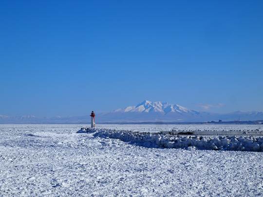 今日のオホーツクはハレ~~♪風は穏やかで日差しも暖かく春を感じる良い天気♪カメラを持ってお出かけしたら千歳一隅の好条件が有りました~~~!!結構メジャーなポイントと構図ですが良い物は良い・・・♪そして今日は斜里岳から続く知床半島がはっきりくっきり見える最高のコンディション♪シーズン中に数回しか見れない景色です!!自分の休日都合と合わせると数年に一度の確率でしょうね~~(爆)