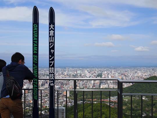 札幌オリンピックを知っている自分としてここはどうしても行ってみたかった場所です!!試合中に選手達が乗っていたリフトに乗って一気に上まで・・・楽ですね~~♪こんな角度で滑ってたんですね~、テレビで見るのとは大違いな傾斜に驚きです。自分には絶対無理だな~!景色にも満足してまたリフトでラクラク下まで~~(笑)下には噴水が有ったのでもう一枚!!
