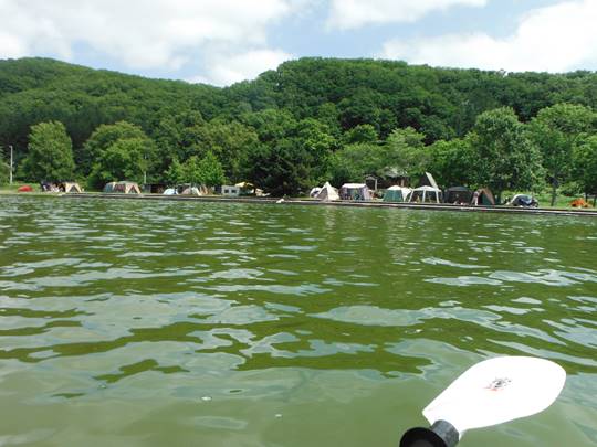 まだ距離間の分かっていないしたひろの無謀な挑戦になってしまたのだ!沖に有る中島を目指して漕ぎ出し開始!!長距離なので、まずは腹ごしらえさあ頑張るぞ・・・と漕ぐこと数十分でだいぶ近づいたぞ~~♪自分一人で良い気分になって漕ぐ手にも力が入ります♪ここで後ろを振り向いてみると・・・まだほぼ中間位・・・!引き返そうか・・・とちょっと弱気も出てしまう距離だったのだ~~(爆)でももう一度中島を見るとやる気復活!!さらに数十分漕ぎ続けて到着・・・(^^♪綺麗に透き通った水の湖岸に感激です・・・♪