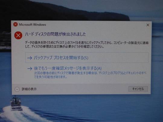 何やら経験の無い不安定な状況が続いていたんだけど・・・数日前の朝いきなり接続不能に・・・!やっと分かったのは接続不能ではなく立ち上がりに無茶苦茶時間がかかるようになったって事!そうこうしているうちにこんなのが出てきたぞ~~(爆)これって修理するしかないよね?明日にでもPC屋さんに持っていきますわ~~!!