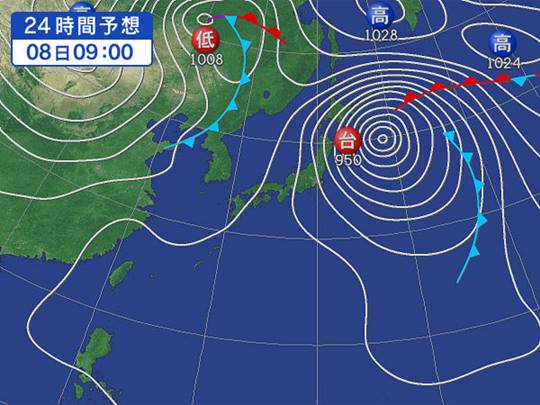 天気図がもの凄いことになってるぞ~~!明日がこんな感じ ・・・かなり細かく線が引かれちゃってます! それが明後日の予想では・・・ まあ綺麗な真円だこと・・・(爆)これが冬だったらほぼ外出不能な世界だね!