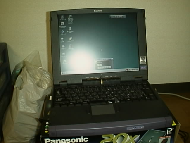 懐かしい写真が、出て来ました。以前、使用していたノートパソコンです。皆さん、ご存知ないかもしれませんが、Canonが、ノートパソコンを販売していました。ブランド名もキヤノン(Canon)です。Windows95番です。途中バージョンアップして98にしましたが、11年前の商品です。XPが、発売後、8年前に使用するのを止めました。当時は、かなり気にいっていました。モバイル(データー通信)もしていました。実は、部屋の片隅に箱に入れて、記念に置いています。中身は、IBM製と一緒だったと思います。キヤノンがOEMしていたはずです。↑Canon(キヤノン)製・ノートパソコン下側の箱は、パナソニック製CDROMプレーヤー良ければクリック!↓