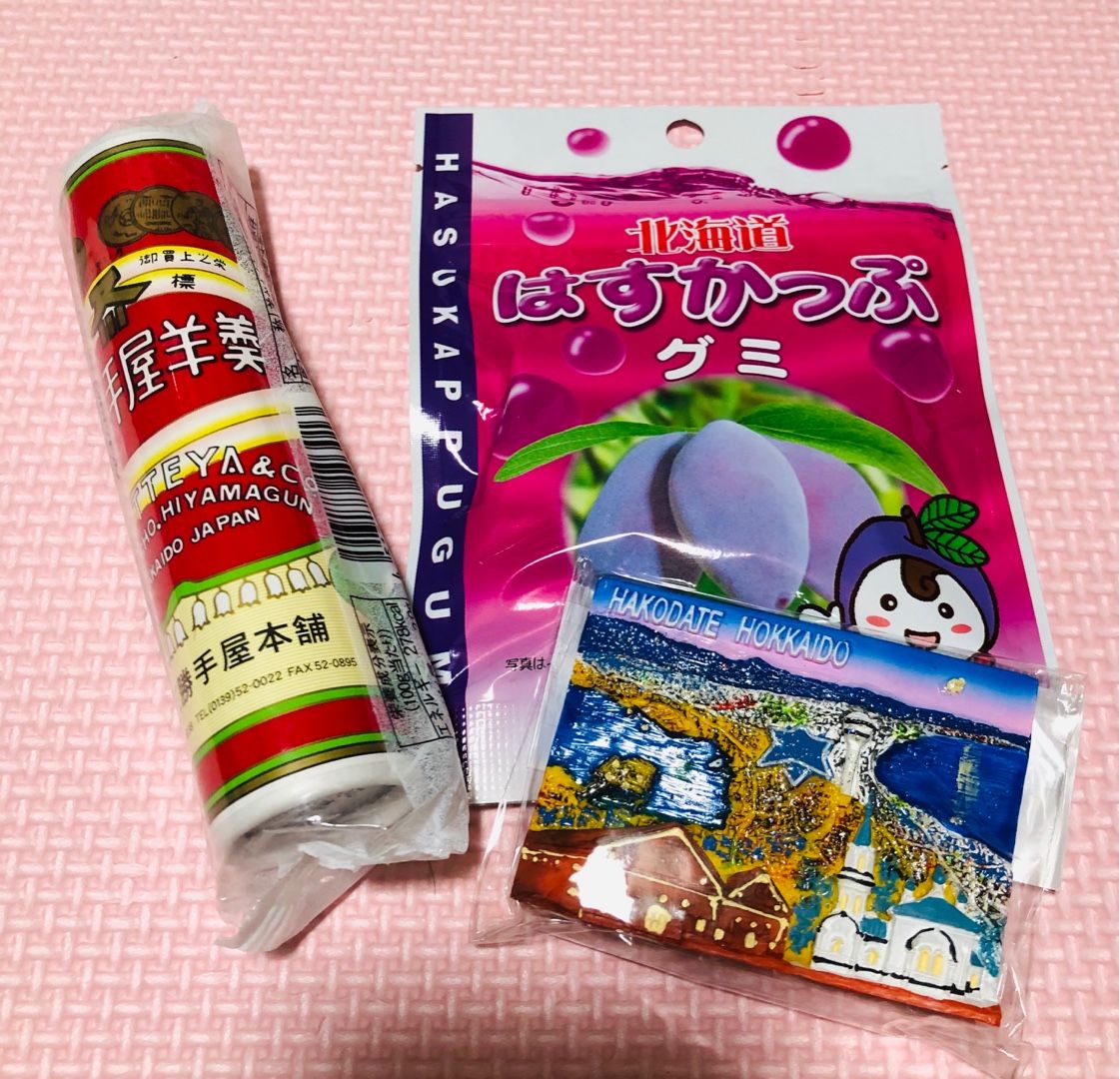 函館旅行2日目を振り返る前に、自分へのおみやげをご紹介します👏🏼✨ (函館旅行1日目) ずばりこちら!! 定番のお菓子は、夫が北海道出張でよく買ってきてくれるのであえて買いませんでした💡 でもこの五勝手屋羊羹は外せない😭 高校生の時に友達からおみやげでもらってからとりこになった羊羹❤ 下から押し出して食べるのがまた楽しいんです✨ ハスカップのお菓子に目がない私👀 グミが気になったので買ってみました! 甘さの方が勝ってますが、ほんのちょっぴりハスカップの酸味も感じられておいしい♥ そして、函館のマグネット 旅行に行くたびに現地のマグネットを購入しています。 いつかマグネットで冷蔵庫を埋めつくすのが夢なんです🤤 あとは、インカのめざめ! 早速昨日じゃがばたで食べました🍴 以前食べた時は本当にスイーツのように甘かったんですが、今回はじゃがいも感が強かったです💡それでもホクホクしていて、バターとちょっぴり塩をかけたら甘さが増しておいしかったです😋 あと、撮り忘れましたが、とうもろこしと五島軒のポルボローネを買いました❤ 優しい食感のこのお菓子が大好きです😍 自分へのおみやげって、楽しかった旅行の余韻に浸ることができていいですよね~😙