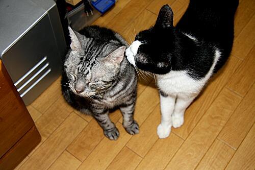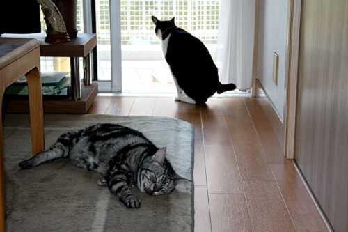 ミミちゃん、チャッピくんに急接近ちゅ~チャッピくん拒否りちゅ~(部屋の乱雑さはお見逃しください)ミミちゃんの場合、油断してるとこの接近から急に噛みます。私に対しても、顔をベロベロ舐めたり、手を舐めているかと思ったら、急に噛む。痛いったらありゃしない。ひっぱたいてやったら、スゴスゴとどっかに隠れてしまいます。最近のチャッピくんの日課は、朝食食べた後、私のベッドにきてまったり。たいていそのまま寝てしまいます。まだ夜は私のベッドと玄関の境目との往復。夜の方が涼しいのに、ベッドに入りびたりは明るくなってから。玄関と私の部屋との境目で寝るってのも微妙な位置。私は部屋の扉は完全に閉めないで寝ているのですが、その境目ギリギリのところでチャッピくんは寝ています。シッポとかお手てがこっちの部屋。身体は玄関。なんとも中途半端な寝方です。ミミちゃんはいつも通りヨメ・ベッド専門。ヨメが寝るずっと前からヨメ・ベッドを占拠している。チャッピくんに取られまいとしてのこと。なのに朝イチバンに私のとこにくる。チャッピくんより先にお風呂場のお水にありつこうと云う魂胆。そんなにチャッピくんばかり意識して疲れないのかしら?疲れるやろな~中之島公園の猫たち-SAVE THE CATS IN NAKANOSHIMA PARK-」整備工事で閉鎖になった大阪の中之島公園。そこに暮らしてた約70匹の子供たち。心あるボランティアのご尽力で「猫の部屋」と呼ばれる仮住まいを得ることができました。すこしずつ里親さまも決まってきてますが、まだまだ多くの子供たちが良いご縁を心待ちにしています。なを「中之島公園の猫たち」では恐縮ですが現金によるご支援は一切お断りしております。「公園ねこ適正管理推進サポーター制度」が実施されています。そちらのリンクもありますので、大阪市在住の方はぜひ見てください。動物と人間との共生・動物の地位向上を目指し活動を続ける保護団体を応援するための「にゃんわんプロジェクト」が立ちあがっております。バナーの貼り付けなど、ご協力いただければ嬉しいです。
