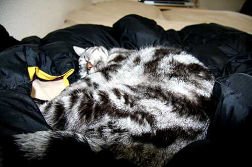 今日は私のダウンベストの上で寝ているよ~チャッピくん。脱ぎ散らかした衣服をベッドの上に置いとくと、必ずその上にいって寝る。お布団だってあるんだから、暖かさは変わらないと思うのに。このダウンベスト、中綿の手触りからど~みても普通の綿しか入っていないのに、ラベルには堂々とダウンと書いてある。安物でも表記ぐらいちゃんとしてよ。ミミちゃんは今朝ゲロンパしたんだよね~ヨメの寝ている部屋で。そしたら部屋から追い出されて、やむなくソファーの上。って、ソファーでゲロンパするんとちゃうでぇ。今回のテンプレは映画「アダムスファミリー」ですよ。お化け一家の物語。チャッピくんとミミちゃんが演じているのは"ゴメズ(シケモク)・アダムス"と"モーティシア(アゲカス)・アダムス"。アダムス一家の家長とその妻。ミミちゃんのモーティシアは魔女なんですよ。画像の左に居る少女はアダムス家の長女、ウェンズディ(パンクズ)。片方の足の指が六本もあって、陰湿な性格。一家でもっとも危険な香りがする。右端のはアダムス家の執事、ラーチ(クズテツ)。粗忽者ですが、パイプオルガンの演奏が得意。イメージはフランケンシュタインからとられました。「アダムスファミリー」は昔TVで放映されて、それから映画化。ミュージカルにもなりました。西洋のオバケだから恐いと云うよりコミカル。ホンダのCMに使われてたこともありましたな。中之島公園の猫たち-SAVE THE CATS IN NAKANOSHIMA PARK-」整備工事で閉鎖になった大阪の中之島公園。そこに暮らしてた約70匹の子供たち。心あるボランティアのご尽力で「猫の部屋」と呼ばれる仮住まいを得ることができました。すこしずつ里親さまも決まってきてますが、まだまだ多くの子供たちが良いご縁を心待ちにしています。なを「中之島公園の猫たち」では恐縮ですが現金によるご支援は一切お断りしております。「公園ねこ適正管理推進サポーター制度」が実施されています。そちらのリンクもありますので、大阪市在住の方はぜひ見てください。動物と人間との共生・動物の地位向上を目指し活動を続ける保護団体を応援するための「にゃんわんプロジェクト」が立ちあがっております。バナーの貼り付けなど、ご協力いただければ嬉しいです。