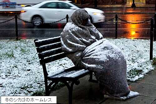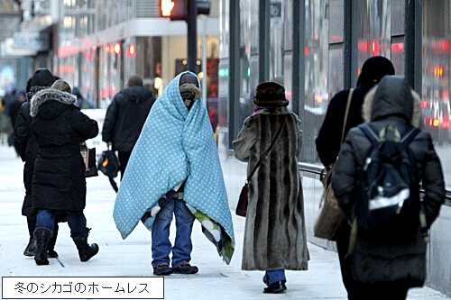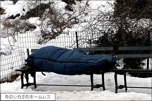 そもそもシカゴはホームレス数全米一と云われるカリフォルニア(全米のホームレス人口の約3割を占める)と比べて極端に寒い土地です。