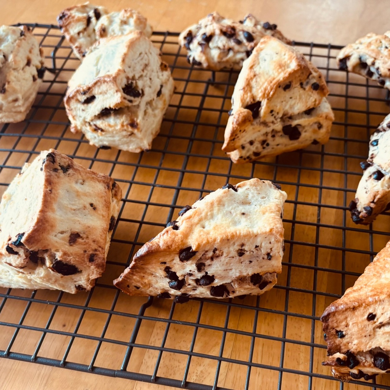 腹割れスコーン、ガッツリ割れた♪今日はいつもの丸パンと味変でシュガートップ昼に母を迎えに行くから手土産用にねあとは仕込んで10日ほどになるので生地を使い切りだストックなくなったから週末はまた生地作りしなくちゃな 手土産のパンは明日の朝ごはんになるだろうしまだ時間あるしなーって今日のおやつ用にスコーンも焼いてみたレーズン好きな母にレーズン入りでチョコチップは子はるのお気に入り写真にするとどっちがどっちか分からんなw スコーンはいいよね30年選手のFP使えば仕込みは10分冷蔵庫で30分休ませてあとは焼くだけ~面倒くさいから型抜きはなし包丁でスパンスパン切って並べて終わり焼き時間が15分だから一時間もあれば全部終わるw隙間時間に朝の用事もほぼ終了なんかできる主婦っぽくて余は満足じゃ(笑) 今日は断捨離の後始末の残りもしなくちゃな空いたカゴを洗って乾かして使えるようにしておく100均のカゴだけど使いやすくてあちこちで使ってる食器棚、冷蔵庫、収納棚、etc.etc.断捨離で余ってきたからきれいにして出番が来るまで待機絶対またどっかで出番あるだろうしなぁ不要となった美品はきれいにして未使用の品物と一緒にラッピングバザーに出したげるね君たちが活躍できる出会いがありますように! GWでは屋根裏と二階が片付いたのでお盆は一階をするらしいちなみに子はるは9連休が確定...恐ろしや今年はいろいろとリセットする年なのか…障子の張替えもしなくちゃなー網戸も張り替えなくちゃなーまたYouTube先生に教えてもらわんとwなんだかんだと今日も忙しい更年期入って、いろいろ体に影響出てるけどありがたいことにメンタルはいっさい問題なしなんだかなー、、、強くなったな、私鋼通りこしてチタン製くらい折れないわこのままタングステンあたりまで目指すかw母(おばちゃん)は強し!