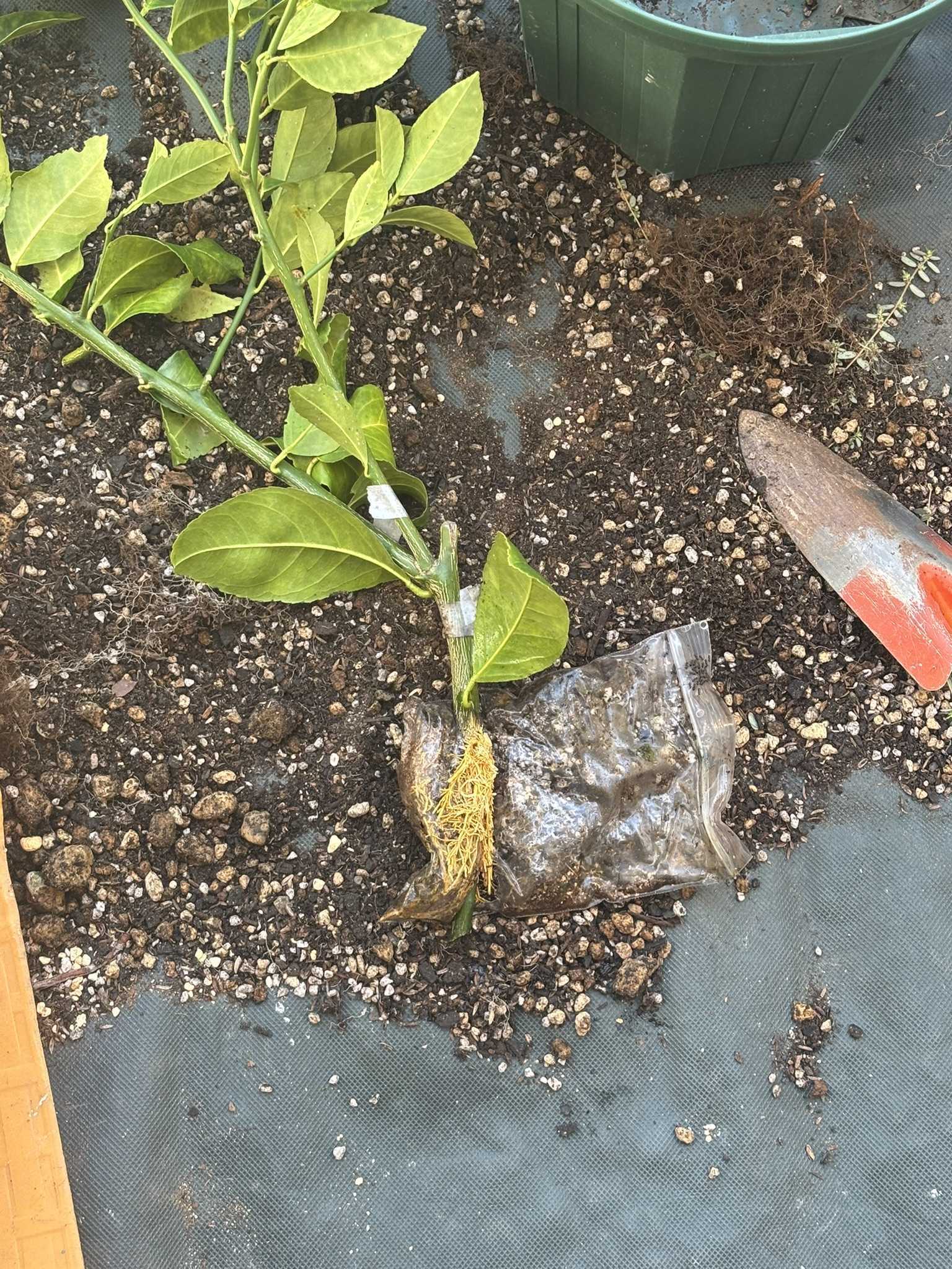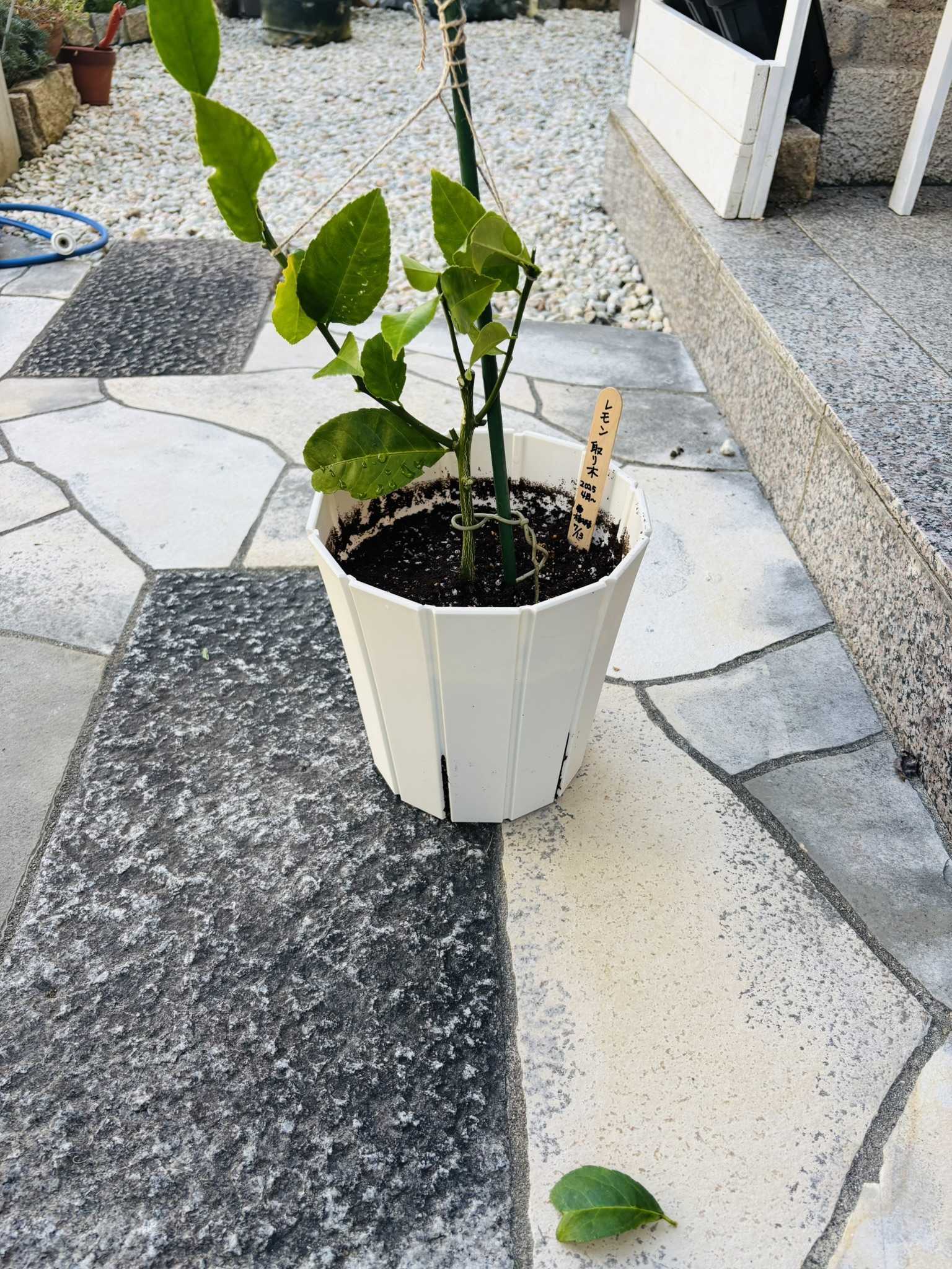 青レモンで収穫してから鉢上げです