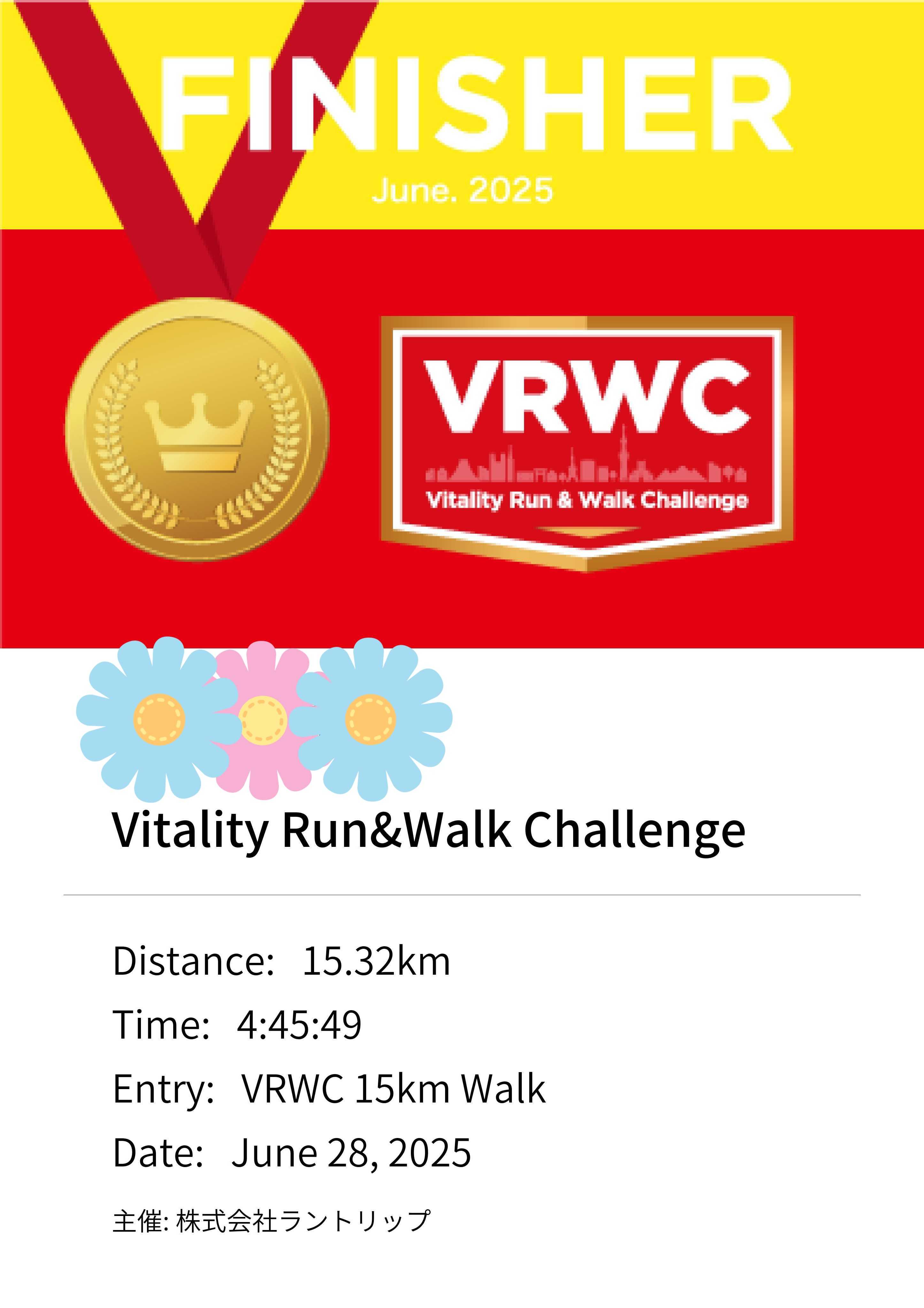 来月も歩くんだって~(T_T)15km前回書いてた通り、土曜の夜7時頃からスタート15km完歩して600ポイントゲット!を目標に出発最初の一時間くらいはまぁ普通に楽しくウォーキング一時間で5kmくらいのゆったりペース早かったら3時間半くらいで終われるんちゃう?なんて余裕かましてられたのは8kmくらいまでw体の負担考えてなるべく平たんな道を選びながら途中短い休憩とったりストレッチしながら歩いてたけど10km超えたころからもう辛い辛い(笑)足は上がんなくなってくるわ腰は痛くてかがめなくなるわストレッチしても20分も歩けばもう痛い痛い特に足の指の腹?裏?普段そんないっぱい歩かんから薬指のとこがめっちゃ痛かった後で見たら豆できてたよ(;^_^Aでもここまで来たら最後まで歩きたいって気持ちもあるし諦めるのは悔しいし、子はるはやる気だしで、最後は気力も使い果たして意地だけで歩いてきました!! 水筒持って歩くのは重いからってことで道中、ローソンで水を買うvitalityのドリンクチケットで無料wファミリーマートで水を買うそれもvitalityのチケットで無料wwありがたや~そして日曜はちょっと屍状態午後から家族で温泉行って癒されてきました( *´艸`) 今日は月末締で使わないといけないクーポン残ってたので朝から交換に行ってきました6月は今日で終わりやん!って朝気づいた(笑)500円分の金券で卵1パックとソフール1個スムージーのクーポン1枚素焼きナッツのクーポン2枚足が出た分はポンタポイント5pでお支払いレジのおばちゃんが「めちゃくちゃお得やね~!!」って言ってくれて「でしょ~」ってドヤ顔の私w今週も頑張ってご褒美もらおうっと♪ちなみに、スタバで使える500円のドリンクチケットだけは有効期限が2か月あるのでまだキープ人数分ためてみんなで行くんだぁそしてダイエット!6月の結果は今朝の時点で‐5.3kg増えてますやん(笑)目指せ‐6.0kgのミッションは失敗昨日はお昼にラーメン食べたからね(半玉にしたけど)ソフトクリームも食べたしね(カップにしたけど)コーヒーの専門店でエスプレッソのソフトクリーム見つけて食べるしか選択肢無いやん??でも、一応先週に一瞬とは言え‐6.0kgでたからさ7月に帳尻合わせを頑張りますよ7月末までにあと2.7kg、つまり‐8.0kgを目標!8月に‐10kgで9月に健康診断!もう完璧なスケジュールではなかろうか?減量の成果はともかく、毎日のヨガは続けてる足の指が開いてきて笑ったw そのうちジャンケンできそうだよ