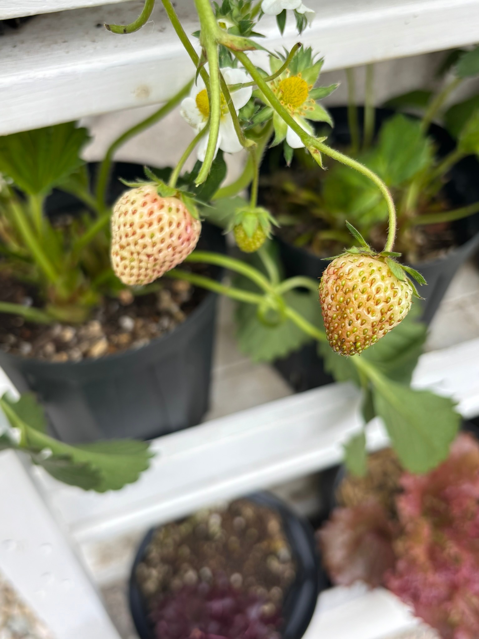 去年の秋にイチゴの苗買って育ててたんだけど右側の実みたいに種の粒が大きくて硬い実で、形の悪いのがいっぱい美味しそうな赤い実のイチゴもいくつか取れたけどう~~~~~ん、、、割に合わんっていうのが正直な感想 今年は美味しい古都華がお得に買えるとこ見つけて美味しいイチゴいっぱい食べたからなー家で収穫って楽しみはあったけど結果がちょっと残念過ぎる花も野菜も育てるの難しい枯らさなかっただけでも私的には進歩ではあるけどさ来年はイチゴやめようかなって言ったら子はるに「え!?」って「育て方勉強してー」って言われてしまったいや、君が育てたらどうよ? 傷んだ葉っぱとか整理してもう終わりかな?って思ったら2番花っていうの?なんかまた花上がってきたのでリベンジなるだろうか?肥料あげた方がいいんかなYouTube先生にお尋ねせねばwそもそもイチゴっていつまで??