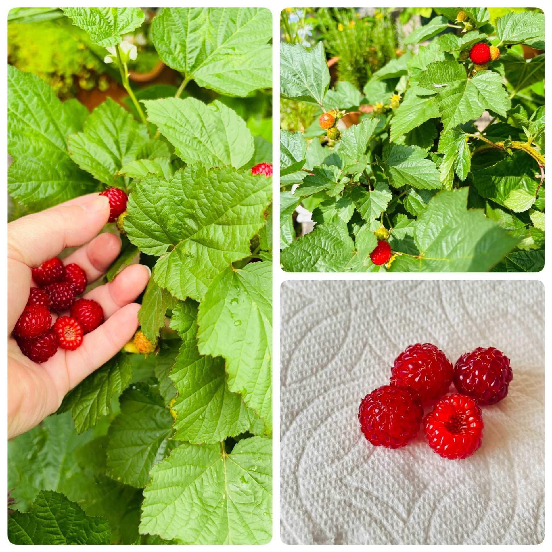 ラズベリー 木立性 『 レッドドリーム 』 15cmポット挿し木苗木 (ウルトララズベリー)去年の9月に購入した苗、鉢植えなので背丈はまだ1mあるかどうか?実が色づき始めたなって思って、昨日最初の1個収穫して味見甘味酸味ともに、、、全体的に薄い味w香りが結構あって、なんか駄菓子にこんなのあったなって感じケーキの飾りにはすっごく可愛いんじゃない単体で食べるには特別美味しい~って感じじゃないけどでも、コレ子供受けはすっごく良さそう他のベリーと組み合わせてタルトとかしたらいいかもな何よりビックリするくらいの実付きの良さ!!今なお新芽が伸びて花が咲いてるよこれだけとれると楽しいよね 今うちの庭はいろいろ成長期ブラックベリーも花が咲いた春に購入した種無しキンカンの苗木も新芽が出てきた出荷前に消毒してるって話で葉っぱ真っ白(笑)一緒に購入したのはなんとアーモンドの木枝が伸びてきたので紐でくくってるこの木は3月頃に桜に似た花が咲くんだって あと、挿し木失敗したと思って放置してたんだけど生き延びたヤツらがいたイチジクとラベンダーの挿し木春に芽吹いて葉っぱが落ちて枯れてしまったと思ってたが!ひっそりと生き延びていたみたいせっかくなのでもうしばらく放置強い子に育ってください定期報告になりつつあるアゲハの蛹上の子は変わらず昨日今日と寒くなったのでまだ羽化してないみたい見つけた3号ちゃんはなんと黒い蛹になってます張り付いた場所がグレーだったから?保護色なんだろうか?正直ビビったーwでっかいナメクジみたいだったから(笑)昨日から置き換えは朝1食のみ、本日も変わらず‐3.8kg