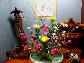 今回のお華は菊とストックと寒桜。お花見出来るなんて幸せ~~