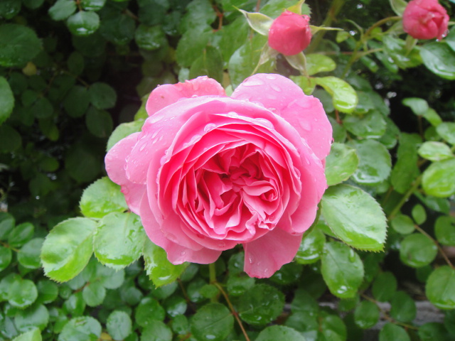 昨日の夜の雨はすごかった。鉢が5つくらい倒れてた。枝が折れたものもあり、、、蕾が折れたものあり、、、でもすごいのは花びら、、、の数、、、、ゴミ袋に1袋半くらいはあったかも。でもその中で頑張ってくれた薔薇。まずはレオナルドダビンチ雨に負けない一番の薔薇まだ蕾が多かったせいもあるかな。これから咲いてくれる薔薇きれいなピンクで整ったお顔。二番目はレッドキャスケードこれも雨に負けない!ちょっと下向き加減になっただけ。咲き始めたらポスト周りが明るくなった。やっぱり赤もいいなあ。。。赤と言えばデルバールのローズデキャトルヴァン鉢が倒れちゃったのにまだ咲き続けてる。えらい!!賞状あげたいくらい(( ^∀^ ))花もちがとってもよくて蕾がのし餅の形(笑)あともうひとつデルバールの大好きなばらレイモンブランちょっとお顔は小さめだけど、いっぱいの蕾ですっごくかわいいピンクが好き♪散るときは潔く散る。黒点病になった(現在も進行中)アンティークレース強い雨でも形が変わってない。でもこれはまだ蕾なのか?葉っぱは少しずつ黒点が増えてるような。。。なんとか10個くらいある薔薇が開くまで持ちこたえてほしい。白いつる薔薇のアルベリックバルビエ雨で散ってしまったものもあったけれどまだたくさんきれいなお顔で残っているものもある。雨にぬれなかったローラアシュレイとペレニアルブルーは満開のまま♪クレマチスは細い枝だけど強風、雨に強い。プリンセスダイアナサニーサイド来年の誘引場所の参考にしよう。。。薔薇さん、クレマチスさん雨なのにきれいに咲いてくれてありがとうヽ(´∀`)ノ散ってしまった薔薇さんたち今まで美しく咲いてくれてありがとうヽ(*゚∀゚*)ノみ~~~んなに感謝。花がらの片づけも平気で出来ちゃう自分の健康にも感謝((*´∀`*))にほんブログ村
