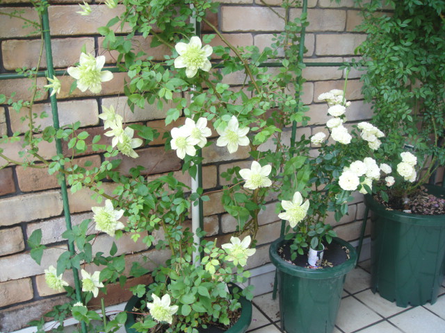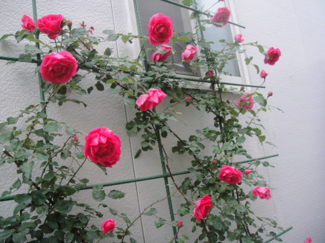 夢のようだった初めての薔薇満開の春。反省点は1、 花がら摘みは早めに!とにかくいっぱい咲いてくれたことがうれしくてなかなか花を切らずにいたガートルートジェキルとレニーブルー今現在他のに比べてちょっと葉が黄色っぽい。「疲れたよぉ」って感じ。薔薇を咲かせるってエネルギーがいること。特にいっぱい咲いているときは株が力を消耗するので早く切ること。2、冬の誘引のときは枝の間隔をあけて!とりわけ、風通しの悪い玄関は気をつける。うどんこ病にやられる可能性大。またうどんこを見つけたらすぐ対処する。3.今年の薔薇、クレマチスの咲いた時期、長さを参考にして組み合わせること。クレマチスは遅咲きの薔薇とコラボできる。4.色合わせ玄関がピンクばっかりになったのが気になった。ピンクだけでなく白もあるとピンクのかわいさがもっと引き立つと思う。5.薔薇の個性をよく考えて誘引場所を考える。特に下を向いて咲く薔薇は高い位置に誘引すること。逆に上を向くのは高い位置だと見えにくい。いま思いつくのはこのくらい。まだまだどんどん出てきそう。すぐ忘れるのでブログにして来年読み返すつもり。。。。(忘れそうだけど、、、)昨日からお腹が痛い。。。2年くらい前から更年期なのにまだ30日に一回しっかり来る。いまだにある生理痛、、、なくなったら淋しい気もするけど、もう卒業したいなあ。更年期障害、、、、仕事やめようかと思うくらい辛かった。でも去年の夏の「ためしてガッテン」で助けられた。私の場合はホットフラッシュとかじゃなくてとにかく心臓が痛くなった。更年期による「狭心症」だった。胸が痛くなって、動悸が激しくなると血圧が上が180とか190とかになった。病院に行っても異常なし。でもぜったいおかしいって思っていたところで「ためしてガッテン」を見た。私これだ~~~!とテレビ見て叫んでた。。。はは。。。http://www9.nhk.or.jp/gatten/archives/P20130724.html今はテレビで紹介してたカルシウム拮抗剤を飲むことですっかりよくなった。こうして好きな庭のこといろいろできるのは健康なおかげ。。。。つらい時期があったからこそ今の健康に感謝できる。体の辛さって本人にしかわからないところあると思う。「異常なし」って言われて「心臓が痛いの気のせいじゃない?」なんて言われるのが一番辛いよね。つくづく女性の体ってホルモンに影響されているのだなって思う。今日の薔薇とクレマチスパットオースチンとクレマチスパミーナブルームーンバフビューティファビュラス!クレアオースチンクレアオースチンは早く切らないと掃除がたいへん。つけまつげみたいなクレマチスサニーサイドてっせんの真ん中もかわいい。満開の白のクレマチス(*'ω'*)にほんブログ村