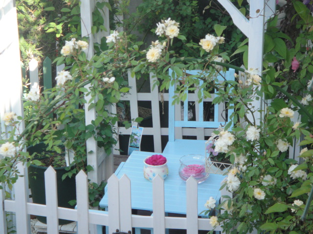 花に埋もれてお茶したい(*゚ー゚*)ER クレアオースチン 純白 レモン色も素敵♪生垣に誘引したピエール2号も咲きだした玄関のピエール一号は満開(*゚ェ゚*)パットオースチンとバレリーナ小花はいつもかわいくて大輪の薔薇を引き立ててくれる濃い紫のクレマチス越しのガートルートジェキル白いクレマチス サニーサイド 生垣の上をすごいスピードでどんどん伸びてるその横のテッセンも黄色い薔薇の背景になりながらどんどん自由にの伸びてるグラハムトーマスも咲きだした。黄色の花壇が一気に明るくなりそうな雰囲気♪さのの紫の後はプリンセスダイアナが白パーゴラを登る光る小花のローラ アシュレイ初めてのDIYのバードハウスもいい感じドングリの木の上でウッドハウス状態(*゚v゚*)夢の国の世界、、、、来年は国バラのような小屋もどこかに作りたい、、、巨大アーチも置きたい、、、、もうすでに頭は来年のこと考えてる。。。。せっかちすぎるね(*´3`*)ゞにほんブログ村