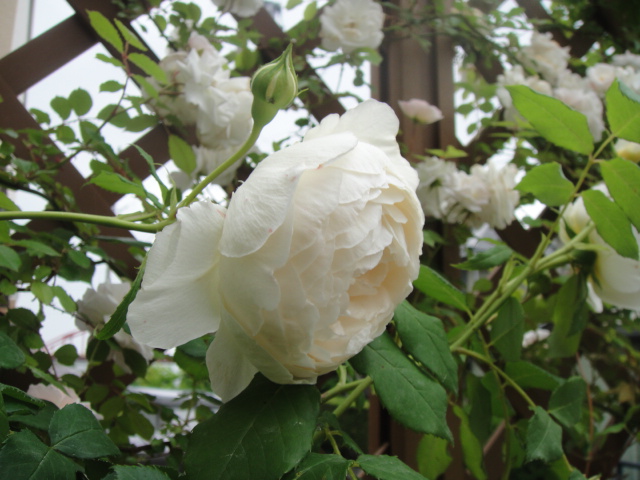 旦那のカメラのSDカードからの写真。容量が大きすぎてブログに載せられなかったけど(PCも初心者)いろいろやってるうちに小さくできた♪ほとんど薔薇園やお出かけの写真ばっかりだったけど、5月18日一日だけ庭の写真もあった。(たった一日かい!)今はない生垣の上で咲くピエールドゥロンサール。下はアンジェラ。アーチのスノーグースがしっかり咲いてる。スノーグースがここでも綺麗。今年の春はスノーグースのローラアシュレイの間でゴールデンセレブレーションが咲く予定。ここは白と黄色のコーナーにしようと思った。今年はこのグラハムトーマスが大きくなってる。アーチ(野菜支柱のアーチ)まで届いてくれる予定。去年は小さい庭は黄色から白色にした。今年はアンジェラを誘引したのでかなりイメージは変わりそう。このピンク色が大好きだったコンスタンススプライ。今年は白い家の壁の前で咲いてくれる予定。鉢なのであんまり大きくないけど大好きなERの一つ。ジャングルみたいだったウッドデッキ。今年は柱に誘引してあるアルベリックバルビエのシュート3本がパーゴラの屋根になる。白薔薇の天井、、、、どうなるかな~~~楽しみ♪一年目の春から二年目。反省点もいろいろある。薔薇も大きくなってるし、ランブラーも増えているからあと二カ月後どんなふうになっているかなかなかうまく想像できない。まあ、、、、どこそこジャングルになってるのだけはなんとか想像できるけど、、、、Greatness is the dream of youthrealized in old age.偉大さとは年を取ってから実現した若いころの夢である。にほんブログ村