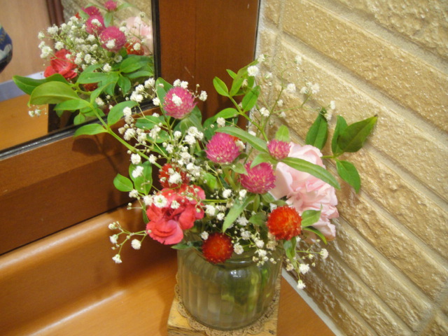 50代になっても相変わらず、ハンバーガーが好きな夫(◎_◎;)私も若いころはお休みの昼のランチは付き合ってマックとかも行ってた。最近は私だけ家でなんか作って食べるわ~~って言って旦那だけ買ってくるということも多い。でもモスバーガーに行く?って言われたときだけは一緒について行っちゃうんだよね~~(*^^*)もちろん、モスのがおいしいのもあるんだけど、一番近いモスバーガーの、、、トイレが好きなの~~、、、、、(◎_◎;)(←読んでいる人の顔を想像)今日のモスのトイレいつも綺麗に掃除してあって可愛いお花が活けてある♪それにメッセージも毎回違うのだ(*^^*)近くで外食に行く中で一番きれいなトイレかな。よく夫に「またトイレ?」とか言われるけど、トイレが近くていいこともあるのだ(*^▽^*)昨日の朝いっぱいカットした薔薇たちでも今日昼過ぎに見るとまたまた素敵に咲いてる (∩´∀`)∩ワーイナエマ 蕾がミサトさんみたいに赤い。つるアイスバーグぽつぽつだけど、今年の秋はよく咲いてくれる。ピエールの蕾も5つ見つけた(≧▽≦)今年は4回目かな、、、すごい返り咲き、、、四季咲きじゃん♪春ほどの迫力はないけど、うれしい。アンブリッジローズはあんまり可愛いので玄関のポスト横に持ってきた(*^^*)可愛い蕾も待機中♪反対側にはカクテルも。赤い花はインパクトがあって目を引く。玄関と言えばいっぱいビオラの寄せ植えを作ったのだけど、また!!!ビオラの天敵、ナメクジ発見(´;ω;`)ウゥゥ春のようには絶対食べられないぞ、、、、一匹デカイのが隠れていたのを発見、、、それ以外は見つけられなかったので、、、、しかたなくオルトランをまいておいた、、、。手作りのふかふか土、、、、の中の微生物ちゃんたちもやられちゃうかな、、、。でもビオラも食べられたくない。究極の選択を迫られた私、、、、。なんちゃって。守るからね!パトロール強化するからね!春のペチュニアせっかく夏越えした君たちもお守りします!最後は玄関上のスパニッシュビューティ冬の足音が聞こえているようには思えない頑張りよう、、、、、、、今日とかあったかいもんな、、、。You always feel good when you give to others.なにかをしてあげる、、、、それだけで気持ちいい。にほんブログ村