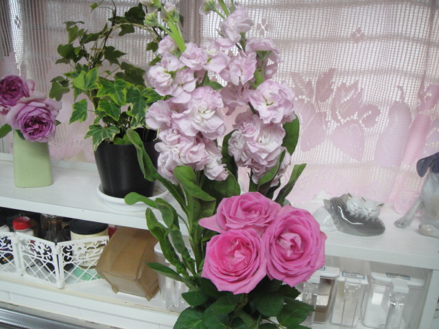 我が家以外でも近所で薔薇を育て始めた家が増えたのだけどその中の一軒が先週亡くなったTさんのおうち、、、入口にレオナルドダビンチのアーチがある。今日そこに一つだけ薔薇が咲いていた。飼い犬の柴犬が親戚らしい人に連れられておとなしくしていたときも、、、その可愛らしく咲いたピンクの薔薇を見たときも、、、ふっと悲しい感情が浮かんできた。Tさん、きっと来春のダビンチも見たかっただろうなあ、、、今日は初めて薔薇の切り花を買った。例の観葉植物をよく買うお店で3本100円だった(◎_◎;)豪華になったキッチン、、、でもなんか超安くない???この切り花、、、、ストックも135円。ねぇ、、、苗代や肥料や手間入れてこの値段って安すぎる~~~~でも名前は知らないこの薔薇、、、、香りはない、、、。それに比べてこのローズポンパドールすごい香りがする~~~(^^♪手間はかかるし、苗は高いけど、庭で咲いたのはやっぱりうれしい(≧▽≦)100均のシクラメン、、、シクラメンって、、、花もちがいい、、、ずっと咲いてる。蕾もずっと蕾のまま、、、いつ咲くのか?玄関周りにこまごまとしたものが増えたのでまた花台を復活。綺麗に洗ってまたいろいろのせてみた。55円ビオラや葉ボタン、ゼラニウムなどガザニア、なでしこもまだ咲いてる♪今日の薔薇プリンセスアレキサンドラケント春よりは小さいけど素敵(*^^*)こちらは大きくさいたパットオースチンいい感じ♪偽物の小屋の壁では赤い花がちらほら。カクテルとギーサヴォアそれから今朝一番嬉しかったのはシャンテロゼミサトさん復活(≧▽≦)復活早いぞ!コガネの被害も早く見つけることが大事なんだ、、、、Life is what happens to youwhile you're busy making other plans.人生とは、人生以外のことを夢中で考えているときのこと。(ジョンレノン)にほんブログ村