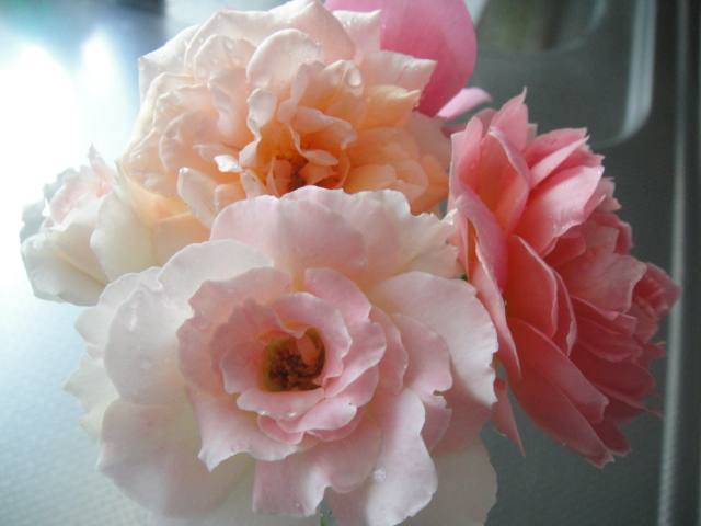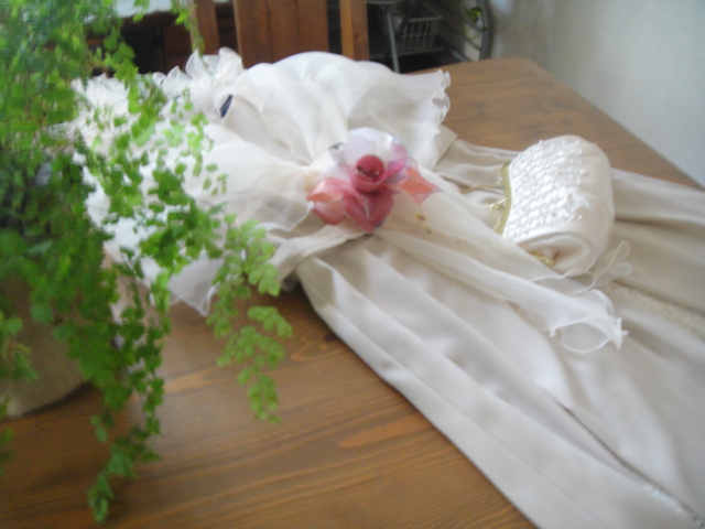 前期のテスト週間に入った息子。大学って8月まであるのだね。入学してからずっとネガティブ発言満載だった息子も最近では前向き発言がぽつりぽつりと出ることもあって嬉しびっくり(◎_◎;)!見学で構わないと言われていた体育も一度も休まず参加することができてちょっぴり自信がついてきたのかもしれない。今までみんなと同じにできないことを数え切らないほど経験してきてつらかったよね。でも前向き発言や笑顔や明るい空気できっともっと今より楽しくなるよ。そんなことを言う母をきっと「お気楽な人」って思ってるかもしれないけどこれからも母はこのままで応援していくね(*^^*)---------今日、息子を送っていた帰りふと思いついてショッピングに行くことにした。もうじき姪の結婚式ある。そのときに着るドレス。ドレスも小物も家にあるもので済ませようと思ったけどなんせ法事は数えきれないほどあったけど結婚式に出るって久しくなかったからな~。家にあるコサージュ探したら「これ、、、娘の小学校の卒業式でつけたやつ、、、(~_~;)」と10年以上前のものかと思ったら新しいもの欲しくなったの。で、、、買ってきました。なんかドレスをアップするなんて、、、ファッションブログみたいじゃん(*´з`)ひらひら~~ふわふわ~~白っぽく写ってるけどベージュ。、、、幸せがやってきそう、、、乙女チック、、、(#^^#)、、、、でも、、、ほんとに着れるか???50代の私、、、(-_-;)こんなの着たことないしぃ~~(普段は普段着ばっかり)でもめったにないことだから着てみたい。お店の人は勧めてくれたけどね。このショールで一気にフォーマルになる。ハンガーにかけてみるとそれほど派手じゃないか。しかもこのショールをとればシンプルなワンピースとして使えるしね。小物もドレスもぜんぶ20%引きというお店の人の悪魔のささやきでカバンまで買ってしまった。ひさしぶりの買い物、、、楽しかったなあ。なんか紙袋いろいろ持ってプリティウーマンのジュリアロバーツ(←古い?)気分♪、、、、まあ、、、、50代だし、、、美女でもなく、、、場所もLAの街でもなく、、、田舎のアピタだけどさぁ(´;ω;`)ウゥゥそれでも幸せ気分の私ってほんと幸せ(*´з`)今日の庭の切り花。薔薇育てるようになって洋服の趣味まで変わったかもね?(*´з`)ガーベラも(#^^#)A merry heart does good like a medicine. 陽気な心というのは、まるで薬のように、身体にいい。 にほんブログ村にほんブログ村
