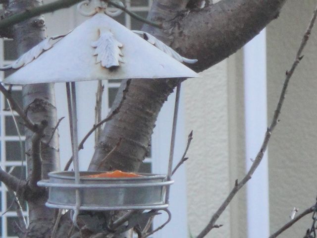 冷蔵庫にカチカチになった2個のみかんを見つけた(~_~;)絞って飲もうかと思ったけどやめて庭に置いてメジロを呼んでみることにした。この冬は一回置いておいたけど失敗。なんの鳥もこなかった。前もこのバードフィダーに置いたんだけどたぶん上から(鳥から)屋根があって見えなかったのだと思う。なのでここと枝の間にもみかんを挟んでおいた。そうしたら来た来た(*^^*)メジロじゃないけどね。鳥:食べていいのかな~安全かな~鳥:あっ(私と目が合う)あなたがくれたのね。鳥:いただきま~す!♪鳥:ごちそうさま。またお願い。鳥の声がそう聞こえたの(←へんなおばさん)また来てね。今度はメジロのお友達も連れてきて(#^^#)Be original.オリジナリティーを大切ににほんブログ村にほんブログ村50代女磨きブログにも仲間入り(*^^*)クリックすると頑張っている女性のブログが見られます。にほんブログ村