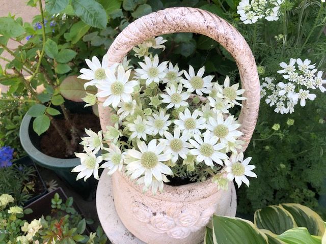 朝の涼しいうちにできる庭仕事をやっておこうと昨日から少しずつ切り始めた白モッコウの枝をゴミ袋に入れていた。枝がピンとはねて右目に当たったと思ったら、そのはずみでコンタクトレンズが飛んだ(◎_◎;)山のようにつまれた白モッコウの枝の中に、、、(´;ω;`)ウゥゥこの中からコンタクトレンズを探すのはありえんほど無理だわ。しばらくは探してみたけど、どう考えても見つかるとは思えん。え~ん、、、ガーデニング中何が起るかホントわからんね。でも自分の目には被害がなくて不幸中の幸いだったと思わなくちゃ、、、さっそく作りに行ってきたけど、数日かかるそう。遠近両用のコンタクトなのでないとほんとに不便。メガネは普通の近視のメガネなので近くが見えんし、片目だけコンタクトだとへんな感じだし。できるまで数日は不自由だわ~当たり前にあるものって思っているありがたいものに改めて感謝しなくちゃ。昨日、今日の庭ポールズヒマラヤンムスクがまだまだ咲いてる。数日前の雨で少し少なくなったけど。来年はもっと電柱が隠れるといいな。ここにクレマチスも誘引してたけど強風で折れてた( ノД`)シクシク…リビング前のパーゴラにいるのでグリーンカーテンの役目をしてくれて以前のリビングより涼しくなった。もちろん可愛い花と香りにも癒されてる一粒で3度おいしいって感じ。玄関前鉢のオルラヤまだまだ綺麗(*^^*)オルラヤとカスミソウ家の北側で咲いてる絞りのギーザヴォアを花瓶入れて玄関前へ 花瓶がアジアン風(〃艸〃)ラベンダードリームとゼラニウム去年咲かなかったラレーヌビクトリア今年は数個咲いた(*^^*)コロンコロン白万重の隣によく見るとオリーブの花が咲いてるね。暑くなってきてだんだん庭に出るのが朝と夕方になってくるね。四季咲きの2番花が小さめで咲きだした薔薇もいたり、遅咲きのエクセルサが咲きだした。まだまだ楽しもう!(^^)!にほんブログ村
