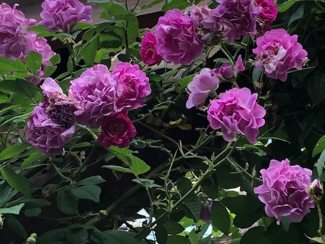 アッシュウエンズディもそうだけど我が家には一年に一回しか会えない薔薇が結構いる。白モッコウスパニッシュビューティポールズヒマラヤンムスクこれらは一回だけでも爆発的に咲いてくれるので納得がいくけれども鉢でチマチマと数少なく咲いて数も少ないから次から次へと咲くこともなくお別れ~ってなる悲しい薔薇たち。ほんとは地植えにしてあげたかった。のびのびと咲かせてあげる場所があればね~贅沢は言いっこなし(*´з`)私がもっと鉢でも上手に大きくしてあげられる腕を持てばいいだけ~でも無農薬では葉が虫に食われてこれがなかなか大きくならない。むずかしいのだ~(←すぐ言い訳(~_~;)小さくても咲きだした薔薇たちをいっぱい愛でてあげよう(#^^#)ジプシーボーイ小ぶりのキュートな薔薇赤から紫に退色してく(*^^*)カーディナルドリシュリュージプシーボーイより小ぶり花もちは悪いけど花数は多い。そして大好きなブルボンローズのバリエガータディボローニャイチゴキャンディのような蕾この薔薇で絞りの薔薇が好きになった。ジプシーボーイと同じくらいの中輪でカップ咲きの愛らしい薔薇。鉢でも上手につる仕立てにできるように腕を磨きたいなあと薔薇栽培の夢を新たにする(`・ω・´)キリポツポツと咲きだした鉢薔薇を並べてニンマリする季節(*´з`)ここをベランダから見るとこうなる。スパニッシュビューティの存在感ありすぎ、、、嬉しいけれどぉ~(*^^)vもっとひくとこう見える。この季節3軒向こうの家まで香りが漂うらしい。まあ、、住宅地だからね。家の北西にいる白モッコウ。まだ咲いているけれど茶色っぽい花も出てきた。まだまだ楽しむのだ。なんたって一年にこの季節だけだもんね。、、、そういいながら家と庭と道を行ったり来たりするおばさんになるのであった。(〃艸〃)ムフッIf you can dream it, you can do it.にほんブログ村