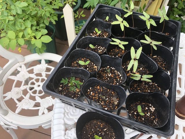 苗を買うときに一年草とか宿根草、多年草って札に書いてある。ガーデニング初心者の私は素直に信じていたけれども一年草って書いてあっても冬を越せるものがあるのだね。まずはランタナ。ピンクとか黄色とかいろんな色がでてる。私は黄色のパニックドームというのを買って長期間花を楽しむことができた。大きくなって鉢増しし10号スリット鉢にいた。札には一年草って書いてあるけれども道端に咲いているランタナは冬を越しているようだし、(それかこぼれ種?)一応廃棄せずにはいた。でも4月になっても5月になっても音沙汰なし。枯れた白い幹のまま、、、やっぱりだめかと思って今日見たら葉がいっぱい出てた(◎_◎;)よかった~とっておいてε-(´∀`*)ホッこの太い白い幹から芽が出ただね。もうひとつはグラリオサントリーの花苗でグリーンカーテンもなるという代物。でもいくつかは咲いたけどカーテンになるまでは咲かず一年草で捨てるには残念過ぎるので切り戻して黒ポットに入れて取っておいた。こちらも大きくなってきた。もっと大きくするには30cmくらいになったら穂先をカットするといいらしい。今年こそは大きく育ててカーテンになるといいのだけど。小さい庭でも毎日新しい発見があって面白い。今日はまたサクランボの木の中で咲いているパレードを見つけたよ(*^^*)ひょっこりはん再び(〃艸〃)緑の中でちょこっと咲く薔薇も素敵(#^^#)モネ様ももったいぶって一輪ずつ咲く(* ´艸`)長く楽しめていいけどね。ハーブ セージの葉が綺麗になってきた。ハーブも多年草でいいよね。こちらもハーブ。レモンミント ときどきちぎって臭いをかぐ怪しいおばさん(*´з`)一番好きなハーブの香りはローズマリー。どっかの研究発表でローズマリーの香りは認知症予防になるらしいって言ってたよ。アロマを出してこなくても自然のローズマリーも同じ香り(←当たり前だろ(^^;)ちっこいクレマチスを楽しんだり(クレマチス ダイアナ)大量クレマチスに驚いたりしてる(*´з`)ここはお風呂からも楽しめるのだ、、、(お風呂洗いの時にね)コガネにやられて(2,3年前)瀕死のスノーグースがナンテンの花の蕾とコラボしてた(*^^*)小さい幸せいっぱい(●^o^●)Happiness is enjoying the little things in life.にほんブログ村