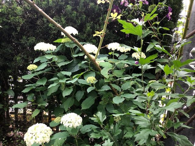 アナベルが咲きだした。狭い庭で咲いているので手前にポールズヒマラヤンムスクの太い枝がある(~_~;)上のアナベルが元の親。3年前くらいに挿し木にして成功したのがこのアナベル。アナベルは花がグリーンからホワイトそしてまたグリーンになる。シンプルな色が素敵な紫陽花。小さい庭にはすでに植わっている木がある中、いろいろ宿根草を植えてみたけど、クレマチスとアナベルが世話が一番楽(*´з`)上にはポールがいるので半日陰の場所。去年アナベルと他の紫陽花を剪定したときに挿し木にしたのだけどアナベルだけ成功。いよいよ小さい庭がアナベルばっかになりそう。大好きだから全然OK(*^^*)でもできればこの紫陽花「ありがとう」も成功してほしかったわ~(^^;)残念。薔薇はあとはクロードモネくらい。ぽつぽつ二番花が咲いているけどかなり小さいよ。ヤマボウシの白い花も咲いてきたので玄関前へ10号スリット鉢くらいまでならスイスイに動かせる!(^^)!種まきビオラが徒長したのでニチニチソウとカスミソウに植え替えた。今綺麗に咲いているのはバーバスカム可愛い(#^^#)真ん中のしべのところが特にツボ(* ´艸`)薔薇の時期は外れちゃうのが残念だけど素敵だから種採ろうっと(●^o^●)この時期スパニッシュビューティ、ポールズヒマラヤンムスクがびんびんシュートを出してきた。切りすぎて心配していた白モッコウもいくつか出てきて一安心ε-(´∀`*)ホッこんなのがあちこち出てる(*^^*)今日はワイドショーで山ちゃんと蒼井優ちゃん←ちゃんづけ?の会見見てた。結婚と聞いて最初はヘッって驚いたけど会見見てるうちに馴染んできた。ドラマ「大恋愛」のムロツヨシみたいに山ちゃんもだんだん男前に見えてくるのが不思議だ~カップルとか夫婦は似てくる場合があるからか???女性が恋すると綺麗になるように男性もなんかのホルモンが出てかっこよくなるのだろうか?な~んてへんてこなことを考えてた(* ´艸`)末永くお幸せに💛Every love story is beautiful.にほんブログ村