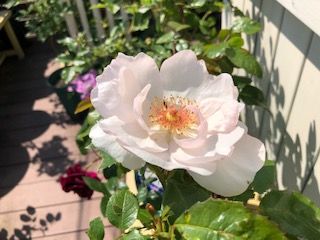 少しずつ増加がおさまってきたコロナウィルスの感染者。とはいえ、ここ愛知県でもまだポツポツと感染者はいる。家にじっとしていられないタイプの人たちは今回の自粛でそうとうストレスが溜まっているだろうと思う。私はコロナ以前から家と庭と畑とたまの買い物なのでほとんど生活は変わらない。でも夫は家にじっとしていられないタイプ。ゴールデンウイークにもゴルフ行ったし、昨日もゴルフだった。テレビでゴルフの打ちっぱなしでさえ結構叩かれているのを見ているので「ねぇねぇ 自粛警察に非難されるよ」って夫に言うと「自粛警察?家にいるね。」と言う。、、、、私のことか?私は非難しているわけじゃなくてただ夫が心配なだけだよ~ん。ゴルフは屋外だし、三密じゃないけどレストランだったり、シャワー室だったりが危なそうかなと思う。でもコロナなのでそういうのはいっさい使わずに純粋にゴルフだけやっているらしいけどね。私がいくら言ってもやめる夫ではないのであまり強くは言わないようにしてる。一方で我が家にはもう一人、引きこもりタイプの息子。初めてこの性格がありがたいって思ったよ。(笑)平日は会社、リモートにはならず、朝早くから電車を乗り継いで通っている。土日はほぼ家。たまに車の運転の練習をかねて夫とドライブに行くくらい。(↑初心者マークの息子の運転している車には正直、まだ乗りたくない。パニック障害を理由に畑に行くときくらいしか乗ってない(*´з`))このまま梅雨が来て夏が来て以前と同じような生活が戻ってくるのだろうか。少なくとも真夏にマスクは嫌だなあ。種から育てたオルラヤが大きくなってきてホワイトガーデンみたいになってきた。今朝は早起きしてここでティータイムヾ(*´∀`*)ノデッキの薔薇は今はプリュムが綺麗(*^^*)50代の生き方ブログのカテゴリーに入りました。いろんな人がいていろんな生き方があって面白いです。↓下をクリックすると読めるよ。にほんブログ村少しでもミニマリストに近づけるようにカテゴリーに入ってみました。↓クリックすると読めるよ。にほんブログ村↓いつもの薔薇ブログもよろしくね(*^^*)にほんブログ村