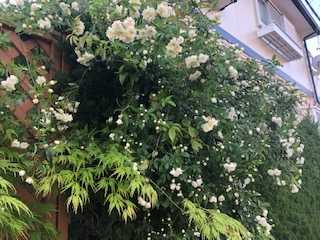 お花は昔から好きだったけどまさか薔薇を育てるとは思っていなかった。一番の理由は庭が狭いから。でもそのころ薔薇ブログにいたベランダで薔薇を育てていた方に影響されてベランダでもできるなら我が家の庭でも育てられるんじゃないかと思って初めて薔薇の苗を買ったのが2013年の6月だった。2番花の蕾付きのイングリッシュローズだった。あまりの綺麗さと植物の持っているエネルギーに圧倒されてあっという間に薔薇のとりこになった。最初のころは夫がゴルフに行くたびにネットで薔薇苗買ってたわ~。(夫ばっかり趣味にお金をかけて悔しいじゃん)でも狭いから植えるところもなく鉢の置き場所もない。わずかにあるリビング前の小さな庭はすでに大きなサクランボの木とどんぐりのなる木が植わっていてしかもカイズカイブキの生垣も大きくなっていたのでまともに太陽の当たる場所はほぼなかった。それで家の周りの通路に薔薇を植えて支柱を立てたりして壁に咲かせて喜んでいたんだよね。でもなんといっても通路は1メートルくらい。場所によっては生垣もあるからもっと狭い。ギリギリ人がなんとか通れるくらいだったよ。それでも春には綺麗に咲いてくれて満足してたんだよね。それが去年最悪のことが起こってしまった。ある日強風だった次の日の朝、いつものようにキッチンのドアを開けて生ごみを外のゴミ箱に入れようとしたら、「痛!」激しい痛みを腕に感じた。飛び上がるほど痛かった。見るとゲジゲジの緑の虫が、、、、(あとでイラガという名前だと知る)この虫は触っただけで蚊に刺されたときよりも数百倍はれ上がる。トゲに毒を持っているからだ。一度刺されると10年は忘れない痛みと言われているらしい。泣このイラガの発生した場所は通路に植えた薔薇だった。ロココだった、、、。実はだいぶ前から道路からロココの葉を遠目に見たときに葉っぱが薄くレース状になっているなと気づいていたのに、めったに通らない通路にあるからまあいいか、そのうちにお世話しようと後回しにしていたのだ。それでイラガがどんどん増えて、ある日の強風でいろんなところに飛んだのだった。その後なぜか、自転車の後ろのかごにも一匹飛んでいてまた触ってしまって最悪状態だった。上から下まで完全装備してロココの枝と共にイラガを撤退させた。少しずつ枝を切り、触らないようにゴミ袋に入れていく作業。しかも狭い通路でイラガと戦う恐怖は半端なかった。最終的にゴミ袋は何重にもしたよ、怖くて。ガーデニングやってきてこれが一番悲惨だった。巨大つる薔薇ポールズヒマラヤンムスクにアブラムシが大量に発生したときとジューンベリーに同じような毒虫チャドクガが発生したときもある。この三つが私の三大庭悲惨物語だ。ガーデニング、薔薇栽培、綺麗なものを楽しむのはそれなりの努力が必要なのだと思い知った。その体験を経て、広い庭があるならいいけどうちのような狭いところで大きなつる薔薇を育てるのは大変。またしっかりと消毒をやれる人ならいいけれど薬と同じく、農薬も嫌いな私は大量に薔薇を育てるのは無理とつくづく思い知った。これからの庭。薔薇は楽しみたいけど、ほんの少しでいい。冬に小さく剪定しておけば、木バラとして咲いてくれる。大きい薔薇は丈夫で消毒のいらないものだけにしよう。(白モッコウ)大きく伸びて咲いてもらうのは消毒のいらないクレマチスにしようと決めた。生垣は大きくなってくると狭い通路をますます狭くしていく。これもあって板塀にしたいと今、思案中だ。手のかからない庭、最低限の消毒ですむ庭。そんな庭を老後はめざしたい。今、我が家の庭からエネルギーをたくさん受け取っている。それは去年の悲惨なことを忘れさせてくれるくらいの魅力がある。やっぱり花が好き、薔薇が好きと思う。ニュアンスカラーが素敵な薔薇アッシュウエンズディ今年は小さく咲いた。数は多そう(*^^*)ガートルートジキル過去にはつる薔薇として活躍。今は木バラ風じたて。横にはプリンセスアレキサンドラケントがいる。ロイヤルサンセットサンセットという名前だけど朝日の中見ても綺麗(*´з`)支柱階段を上るクレマチスこちらも数種類のクレマチス玄関前では白万重が2本の麻ひもを登る。一本は天井にたどりついた模様。シギョクの横の麻ひもを登るのは紫のクレマチス。寄せ植えに咲くのはカーネーション?婿さんのお母さんが娘にあげた花苗。「私が持っていると枯らしそう」と我が家に来たやつ。この寄せ植えに入っている苗はすべてそう。娘よ。一つも枯れなかったからね(*^^)vどんな花が咲くのか楽しみ。新しく50代主婦ブログに参加しました。にほんブログ村ミニマリストのカテゴリーを2型糖尿病に移行しました。にほんブログ村↓いつもの薔薇ブログもよろしくね(*^^*)にほんブログ村<