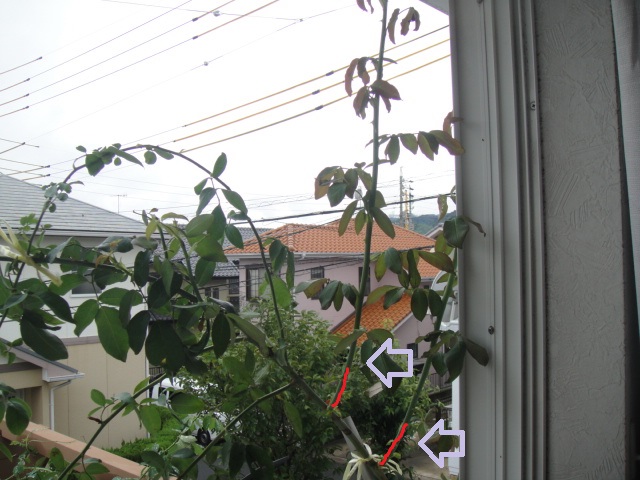 ハーデンベルギアのつるが登っていったんだ、、、(+_+)