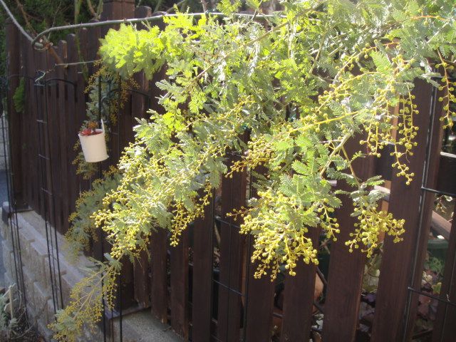 蕾のミモザも光が当たって綺麗。