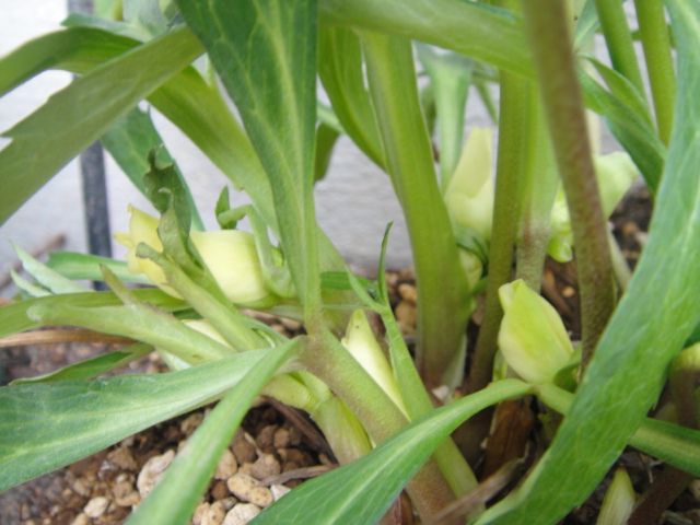 葉っぱの下の覘くと白い花芽らしきものがいくつかある(#^^#)