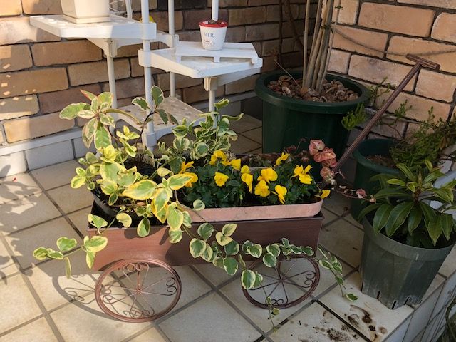 セールのビオラと家で増えたつる植物を入れてみた(*^^*)